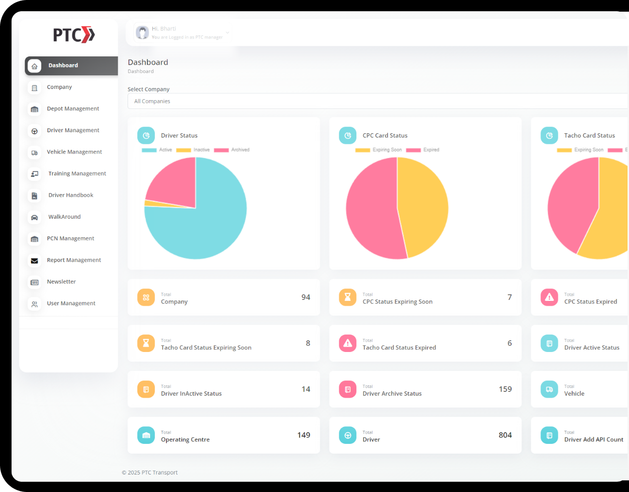 PTC ERP is a comprehensive fleet management solution designed to streamline operations, enhance compliance, and optimize vehicle and driver performance. With a suite of integrated modules, PTC ERP ensures that every aspect of fleet management is covered, from license tracking to driver performance and vehicle maintenance.